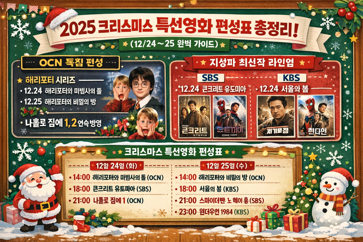 #2025크리스마스특선영화 #크리스마스TV편성표 #크리스마스영화추천 #OCN편성표 #해리포터연속방송 #나홀로집에시간 #성탄절특선영화 #12월25일TV #볼만한영화 #아이들과함께볼영화