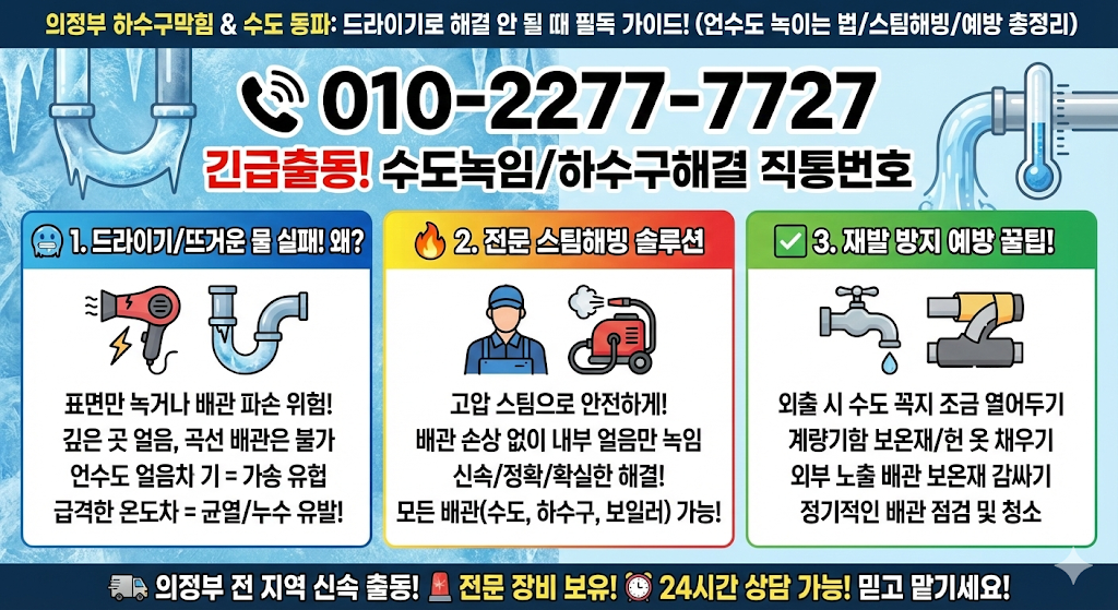| 의정부 하수구막힘 겨울철 배관 동파 예방 및 수도 계량기 관리법 (장암동) (0) | 2025.12.26 |