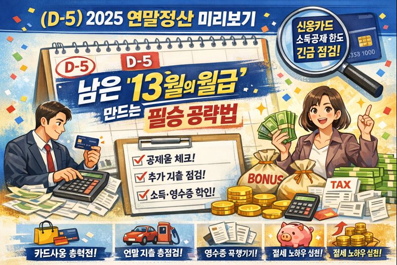 이 세 가지만 기억하셔도, 내년 2월 여러분의 급여 명세서는 훨씬 따뜻해질 것입니다. 남은 2025년, 알뜰하게 마무리하시고 기분 좋은 '13월의 월급'을 맞이하시길 진심으로 응원합니다.