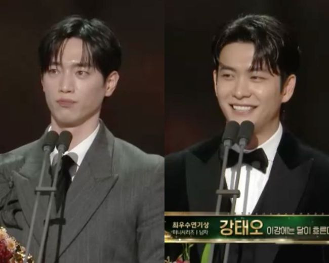 | 남자 최우수 연기상 | 송창의, 강태오 | 다채로운 역할 소화 인정 | 강태오 '이강에는 달이 흐른다' 로맨스 |