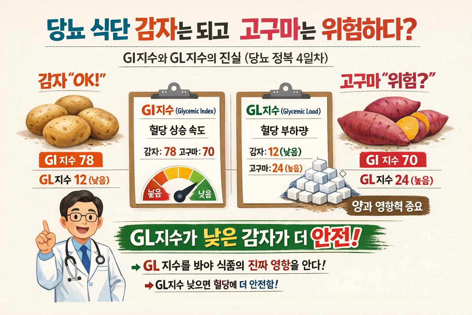 오늘은 우리가 놓치고 있던 반쪽짜리 진실, **GL 지수(혈당 부하 지수)**까지 완벽하게 파헤쳐 보겠습니다.