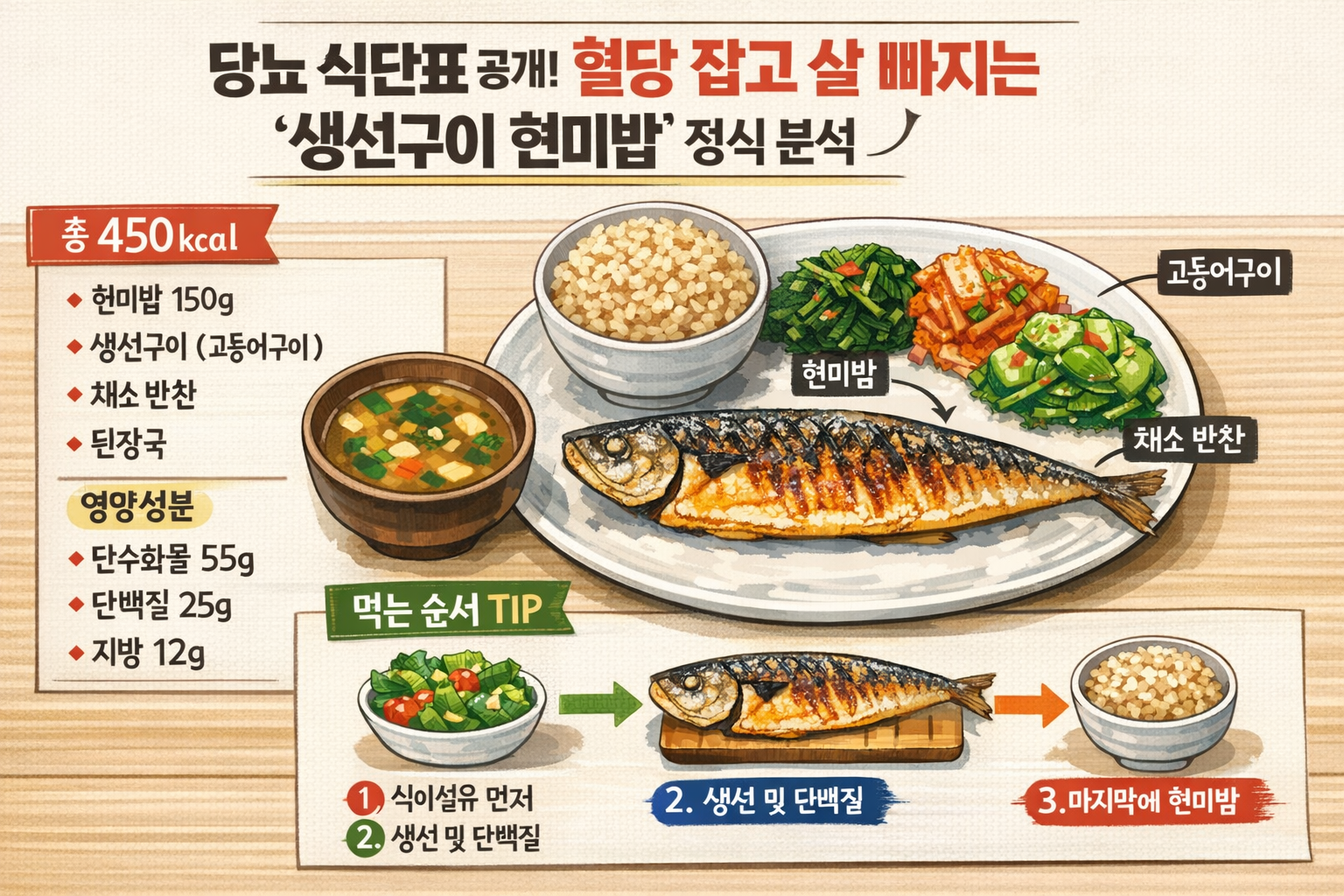 | 당뇨 식단표 공개! 혈당 잡고 살 빠지는 '생선구이 현미밥' 정식 분석 (칼로리, 영양성분, 먹는 순서 총정리) (1) | 2025.12.21 |