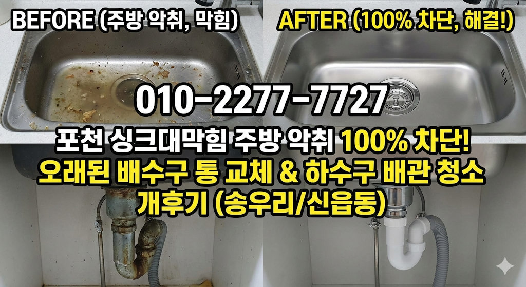 [포천 싱크대 막힘 & 냄새 차단 전문 원설비] 문의 365일 연중무휴 상담 환영