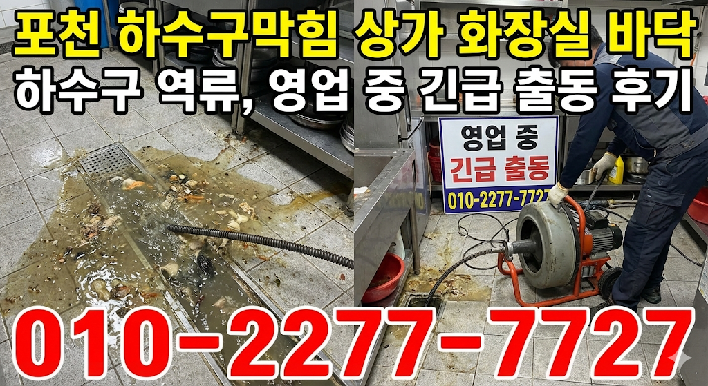 자영업 사장님들에게 **'영업 중 포천 하수구막힘으로 하수구 역류'**만큼 피하고 싶은 상황이 있을까요? 악취 때문에 식사하던 손님이 나가버리면 그날 매출은 물론 가게 이미지까지 큰 타격을 입게 됩니다.