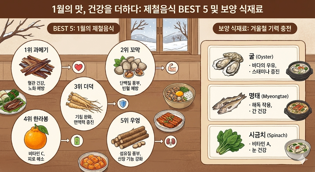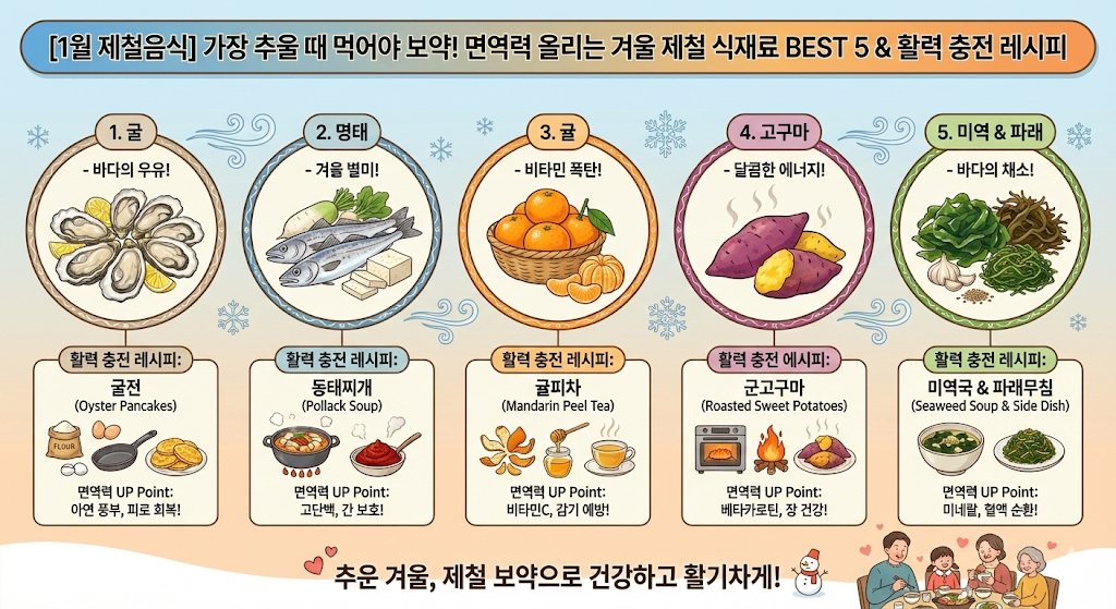 [1월 제철음식] 가장 추울 때 먹어야 보약! 면역력 올리는 겨울 제철 식재료 BEST 5 & 활력 충전 레시피