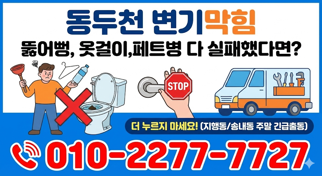 📢 동두천 양주 변기막힘, 주말에도 OK!