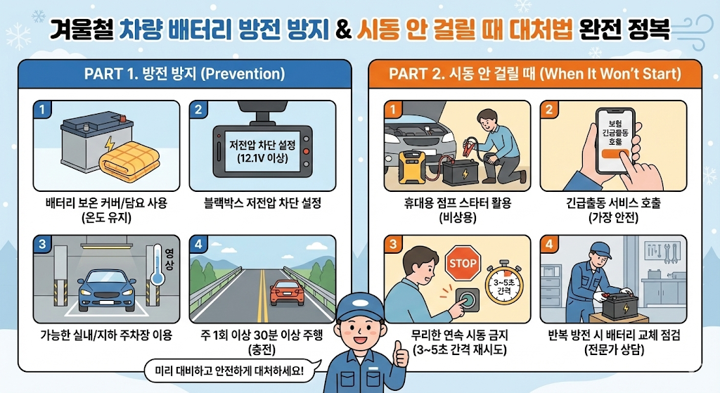 #겨울철차량관리 #자동차배터리방전 #시동안걸릴때 #배터리점프방법 #휴대용점프스타터 #블랙박스방전 #전기차겨울관리 #긴급출동서비스 #배터리방전예방 #겨울철시동불량 #2026년한파