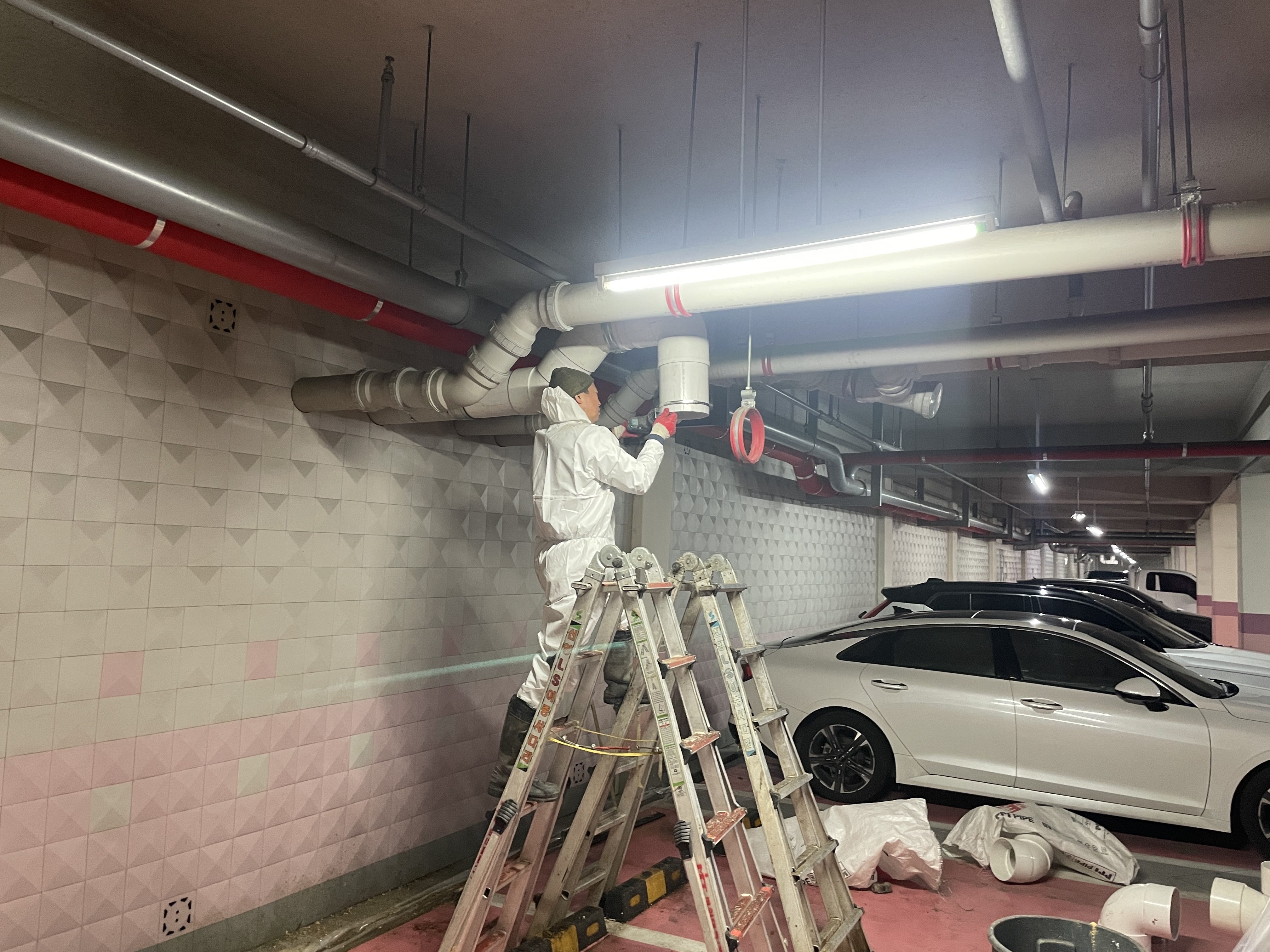 건물 전체 배관이 중간에서 한 번 꺾이는 구조였고,
