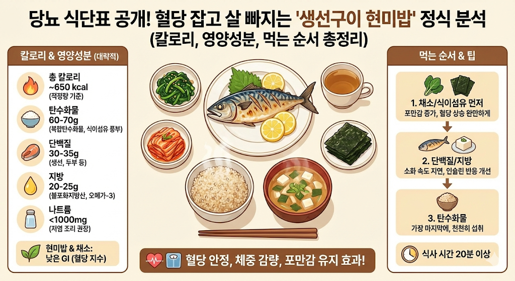 안녕하세요.당뇨 관리를 하는 아내와 체중 감량이 시급한 남편, 건강한 100세를 준비하는 저희 부부의 **'공부하는 식단 기록'**입니다.최근 아내의 혈당 관리를 위해 당뇨병에 대해 깊이 있게 공부를 시작했습니다. 공부를 하면 할수록, 우리가 무심코 먹었던 한 끼가 혈관 건강과 인슐린 호르몬에 얼마나 막대한 영향을 끼치는지 깨닫고 있습니다.지난번 유혹을 이기지 못하고 먹었던 고지방 외식의 실수를 만회하고자, 오늘은 당뇨인과 다이어터 모두에게 교과서라고 불릴만한 정석 식단을 차렸습니다.바로 **'생선구이와 현미밥 정식'**입니다.단순히 "몸에 좋다"는 추상적인 이야기가 아닙니다. 왜 이 식단이 혈당 스파이크를 막는지, **GI지수(혈당지수)**와 영양학적 데이터를 기반으로 낱낱이 파헤쳐 보겠습니다.1. ?..