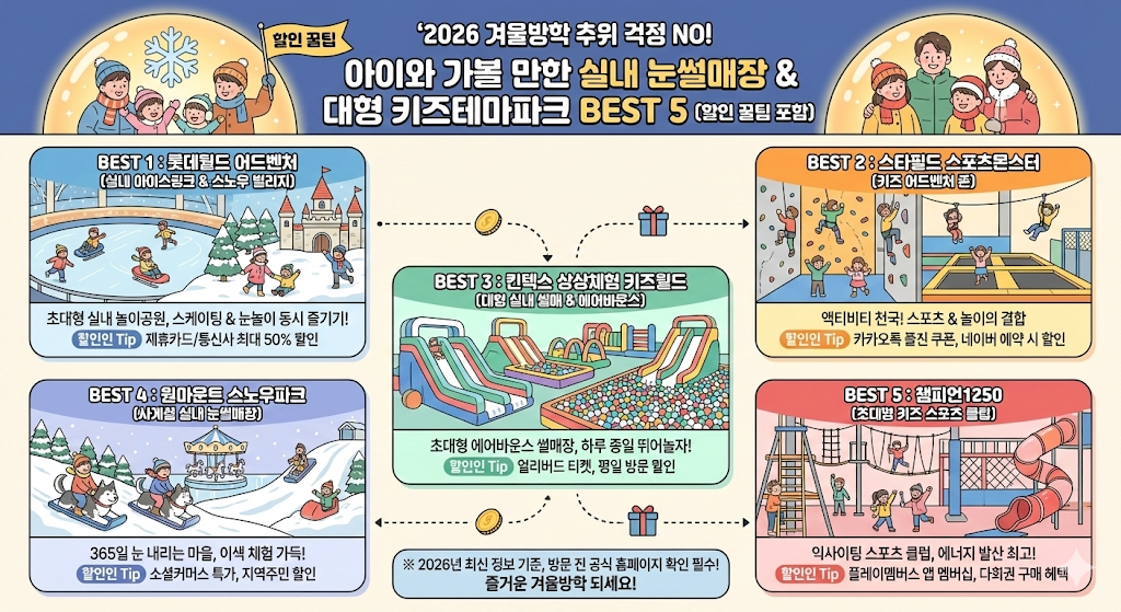 2026 겨울방학 추위 걱정 NO! 아이와 가볼 만한 '실내 눈썰매장' & '대형 키즈테마파크' 추천 BEST 5 (할인 꿀팁 포함)