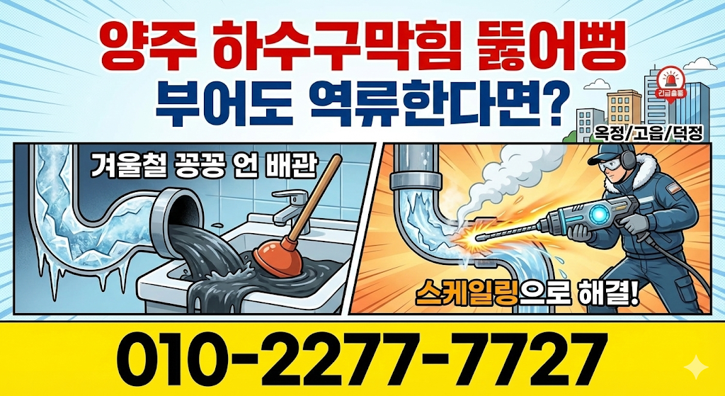양주 하수구막힘 뚫어뻥 부어도 역류한다면? 겨울철 꽁꽁 언 배관, 뜯지 않고 스케일링으로 해결! (옥정/고읍/덕정 긴급출동)
